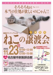 11月23日(日)譲渡ボランティアによる猫の譲渡会に参加します!😺