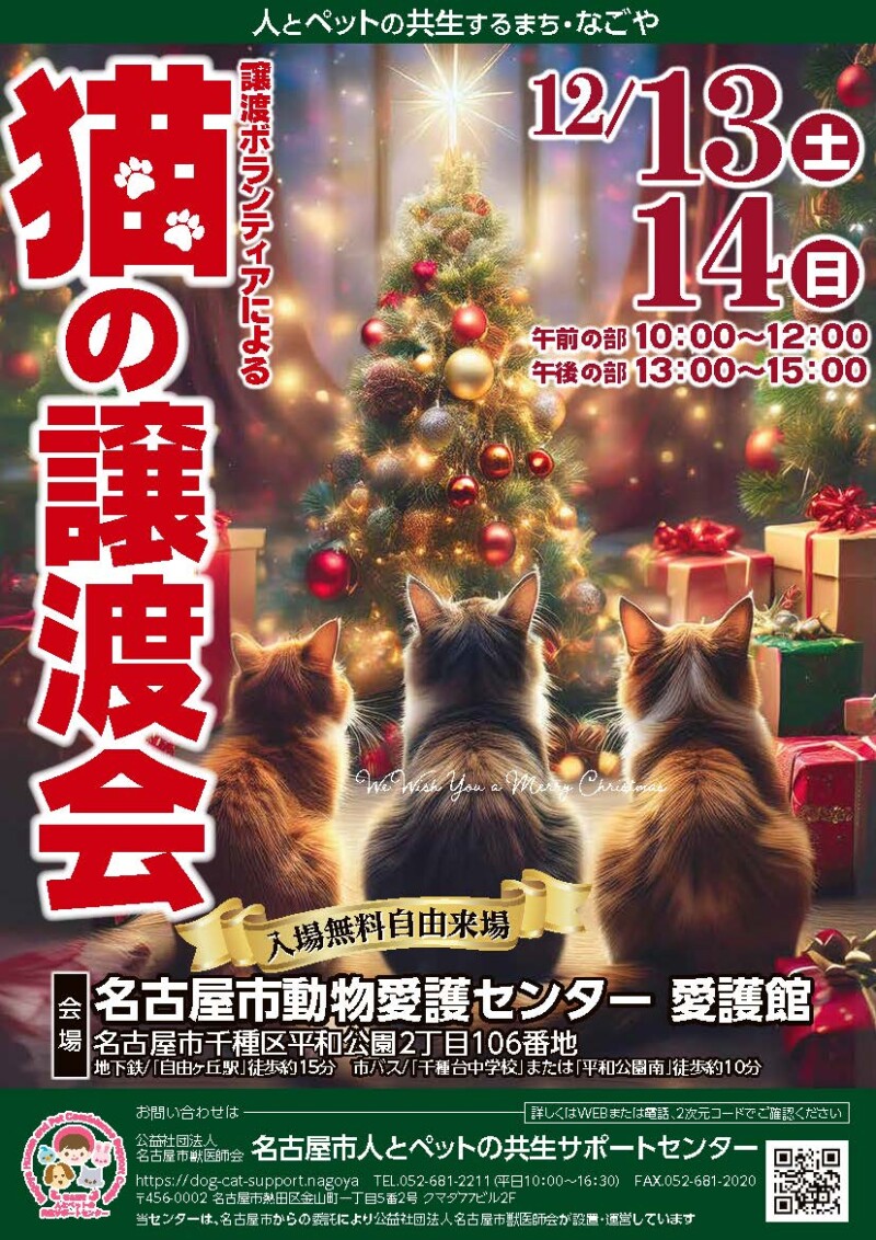 12月14日(日)譲渡ボランティアによる猫の譲渡会に参加します!😺