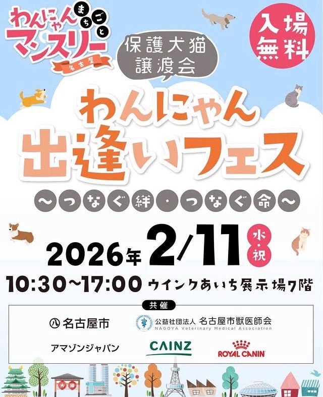 「わんにゃんまちごとマンスリー」の基幹イベントとなる保護犬・保護猫の譲渡会。名古屋市動物愛護センターにボランティア登録をしている団体が参加し、保護犬・保護猫たちと実際にふれあい、その個性や魅力を知ることができます。